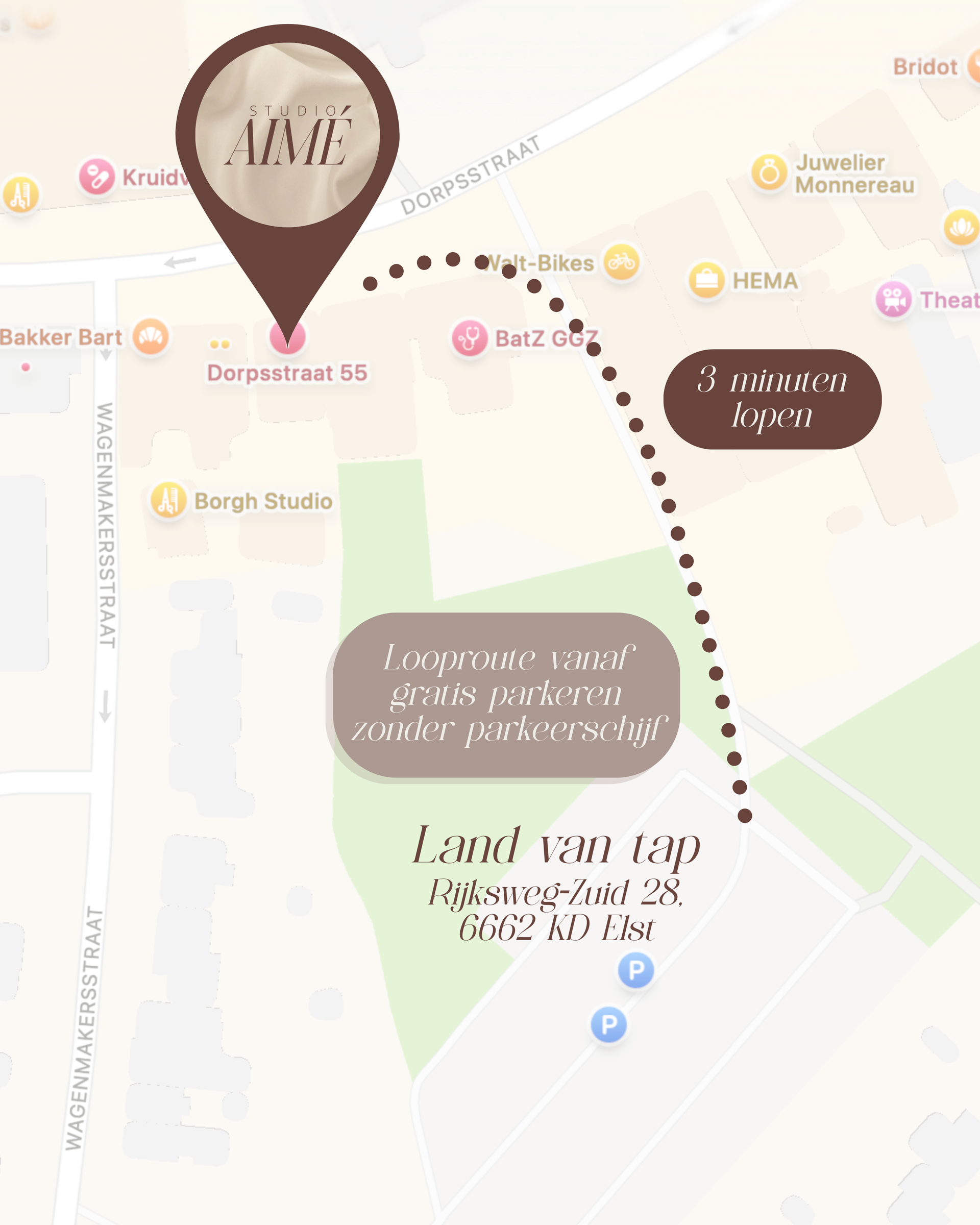 Er is voldoende parkeergelegenheid in de buurt van de studio. Houd er wel rekening mee dat het op sommige dagen, zoals tijdens de markt, wat drukker kan zijn.